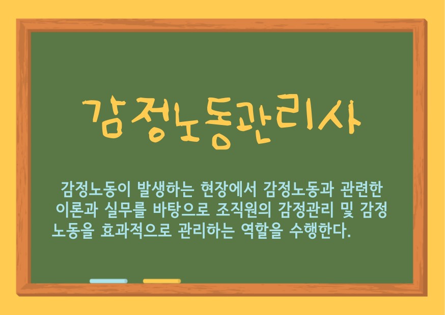 생활 수준의 향상으로 인해 최근 이슈가 되고 있는 감정노동은 이젠 특정 개인의 문제를 넘어서서 사회적인 문제로 인식되고 2018년새롭게 생성된 자격증이다. 조직에서 감정노동을 수행하는 직원을 대상으로 감정노동, 직무스트레스등 체계적인 관리를 통해 기업 생산성 및 직무 몰입도를 향상시키고 올바른 조직문화, 분위기를 조성할 수 있는 기본적인 자질을 평가한다. 조직에서 주어진 업무를 적극적으로 수행할 수 있도록 지원하는지 긍정적인 마인드로 조직의 건전성 및 커뮤니케이션 향상에 적합한 역량을 보유했는지를 평가하는 시험입니다.