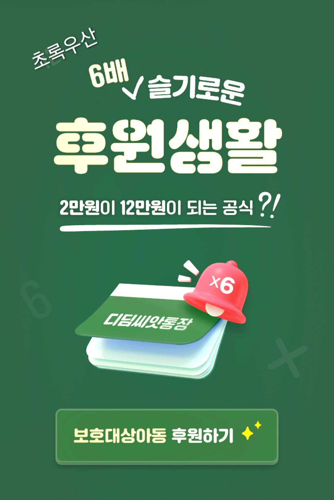 초록우산어린이재단 정기 후원: 초록우산어린이재단 홈페이지를 통해 디딤씨앗통장 후원 캠페인에 참여할 수 있습니다.